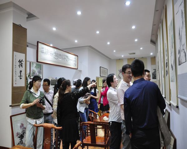 为了更好的进行文化交流,下午我校团委组织各位来宾参观了扬州著名山水画家张建老师工作室。此次参观得到了工会领导的热情接待。工作室中陈列了很多张老师及其学生的作品,有意境深远的中国水墨画、也有行云流水的书法作品。参观过程中,张建老师就中国画的表现形式进行解读,言简意赅地阐述了中国画重要的创作理论和表现手法,大家时而立足观看,时而拿起相机拍摄下心中认为最美的作品,表达着对作者们精心画作的敬仰之情。接着张建老师邀请了扬州民间工艺非遗物质文化传人、扬州刺绣大师卫芳大师和她的学生李娟老师讲解并表演了刺绣工艺在中国山水画和任务画表现上平针绣的艺术创作形式,现场观摩的青年们个个都赞叹不已。同时为了更好的展现扬州传统文化特邀请全国仅有的扬州非遗项目通草花工艺大师周春涛,现场表演了通草花制作工艺,通过展示让我们更深入的了解了通草花的传承和发展。最后,在看到大家心致盎然,意犹未尽时又安排他们参观了艺友画廊,在那里大家欣赏到了从清代末到现当代的许多的画作和书法作品。