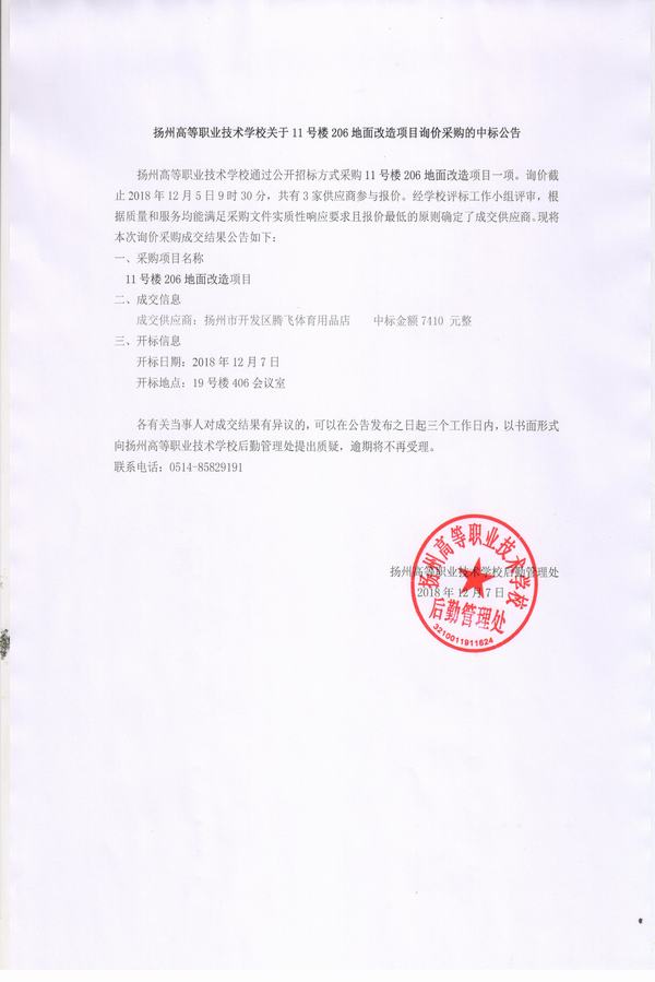 11号楼206地面改造中标公告
