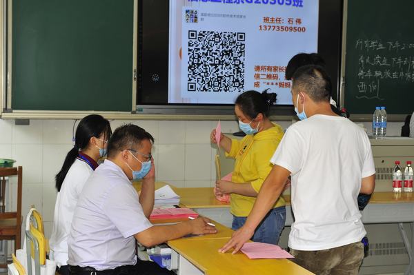 报到现场,学校严格按照常态化疫情防控要求开展迎新工作,新生及家长在校门接受体温检测合格后入校、入班报到并办理住宿手续。各系部领导、新生班主任和迎新志愿者们耐心详细地指导和帮助新生完成入学工作,各区域秩序井然,各环节流程紧凑,各项工作有条不紊。全体教职工以热情周到的服务展现了高职校人的精神面貌,令新生和家长倍感亲切温暖。