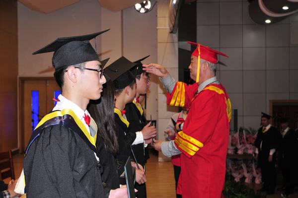 随后,张振伟、陈大斌两位学术导师逐一为167名获得学士学位的学子正冠拨穗,颁授证书,并合影留念。