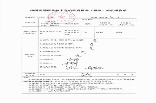 智慧生活实训设备项目验收报告