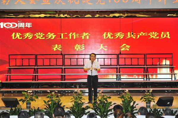 党委副书记、纪委书记赵杰同志宣读《2021年学校优秀党务工作者、优秀党员表彰决定》。