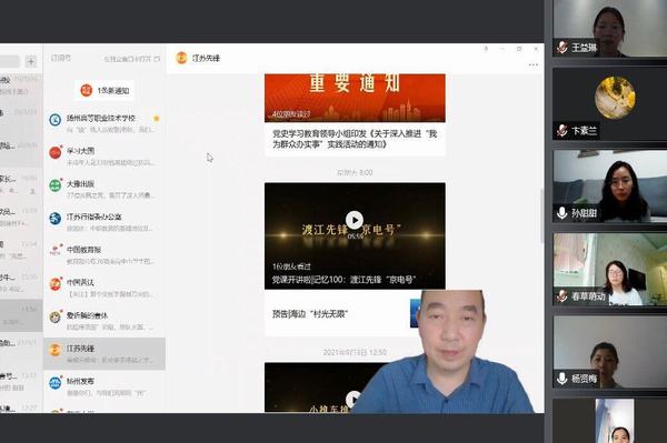 会上,李春通过“江苏先锋”学习平台分享了与此次党员活动日主题相关的视频资料。大家观看了微纪录片《记忆100》渡江先锋“京电号”,影片生动诠释产党人牢记初心使命、矢志永远奋斗的坚定信念和家国情怀。大家通过平台学习了张桂梅同志的先进事迹,她历尽艰辛、克服困难,硬是把1600余名大山里的女孩送进了大学,帮助她们改变了命运,大家都为之动容。观影后,陈卫卫老师和王雅老师作为代表进行发言,大家纷纷表示要以张桂梅同志为榜样,学习她爱岗敬业、爱生如子的高尚师德,争做新时代“四有”好老师。