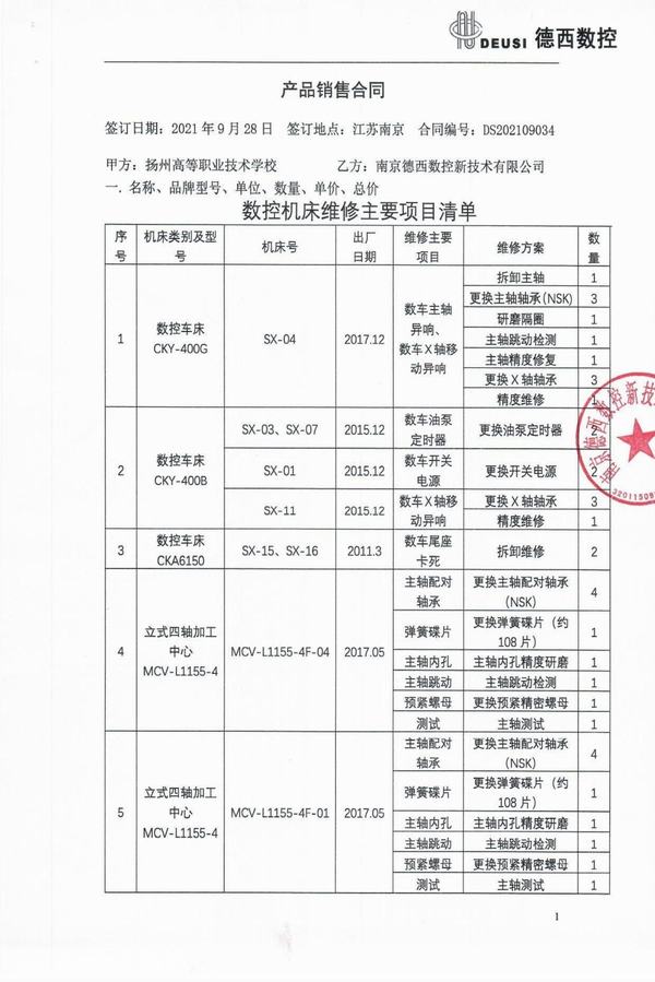 数控机床维修项目合同