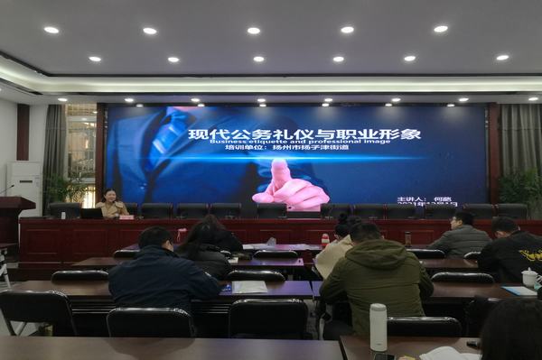 为进一步推进领航学校建设工作,提升学校社会化服务功能,12月1日下午,学校组织人事处副处长殷燕、旅游教研室主任何葩赴扬子津街道分别开展了公文写作和公务礼仪现场培训,街道30余名公务人员参加了培训。