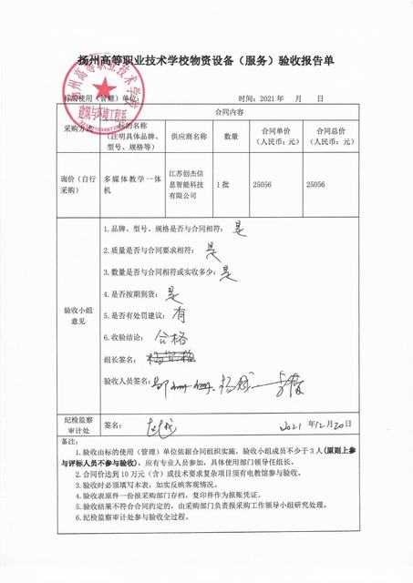 多媒体教学一体机项目验收报告