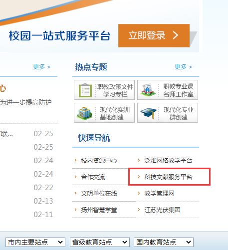 具体访问方法:打开学校网站,在首页“快速导航”栏,点击“科技文献服务平台”即可,