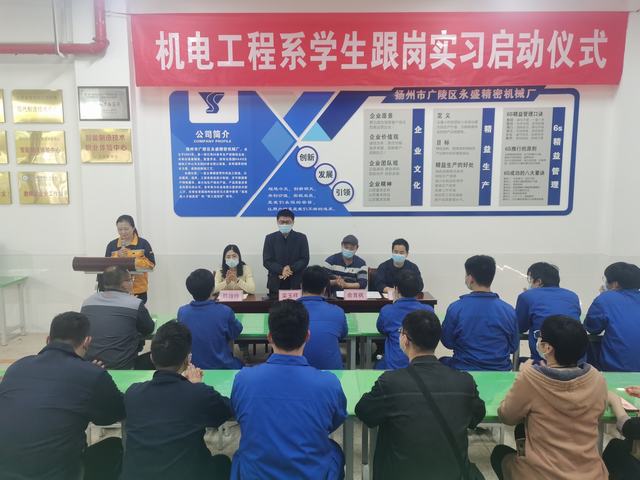 4月25日下午,机电工程系校企合作学生跟岗实习启动仪式在实训工厂校企合作区举行。机电工程系主任栾玉祥、永盛精密机械厂总经理俞育枫、实训中心教研室主任刘玲、智能控制教研室主任陈玲玲、企业员工代表、教师代表及全体跟岗实习学生出席启动仪式。刘玲主持启动仪式。