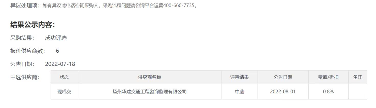 扬州高等职业技术学校校园维修改造工程监理(二次)中标公告
