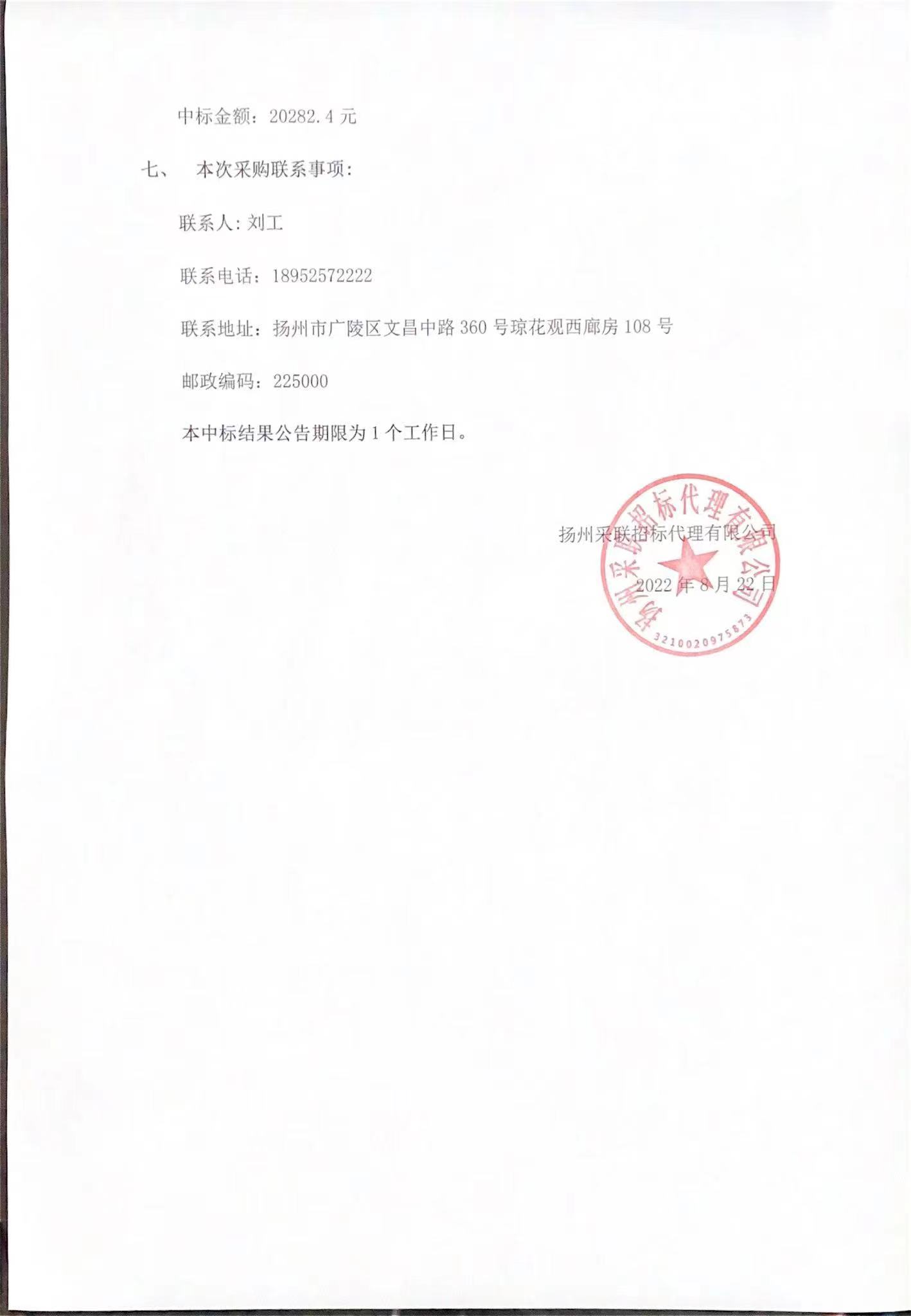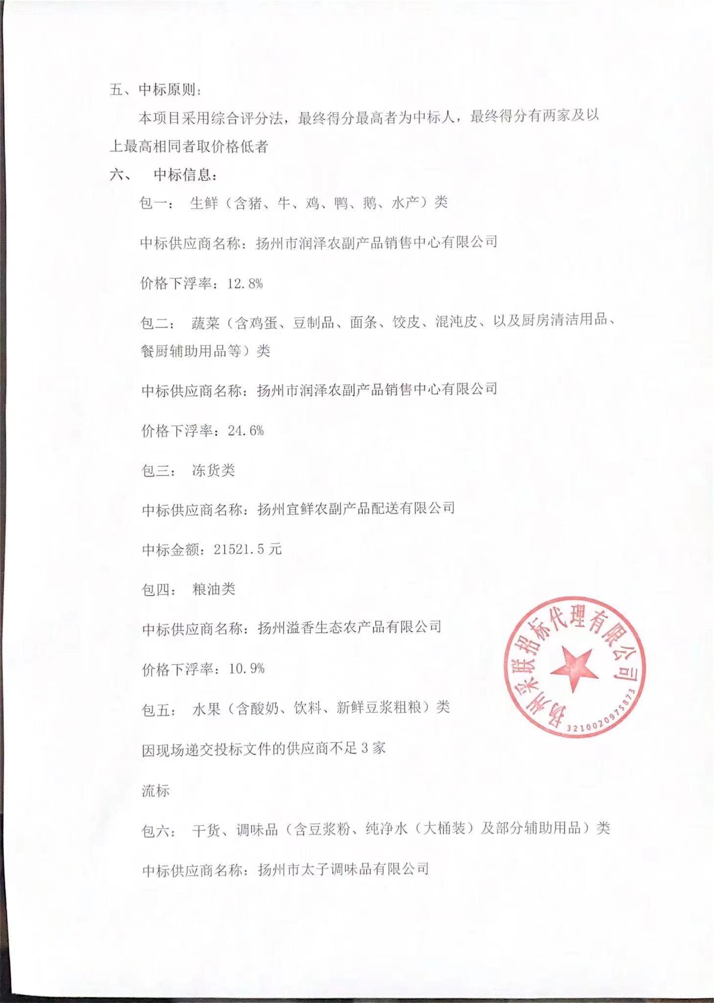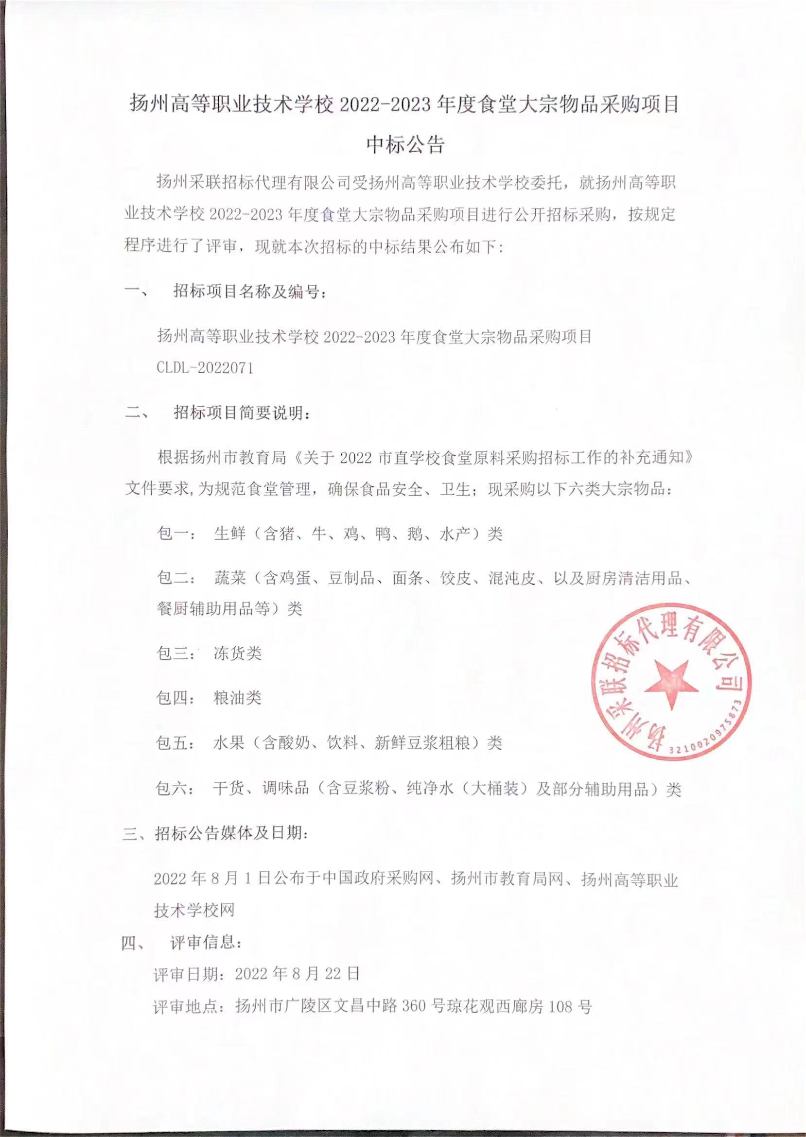 扬州高等职业技术学校2022-2023年度食堂大宗物品采购项目 中标公告