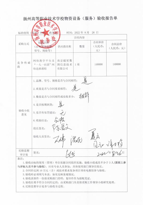 网络教学平台及“一人一社团”网络选修课项目验收报告
