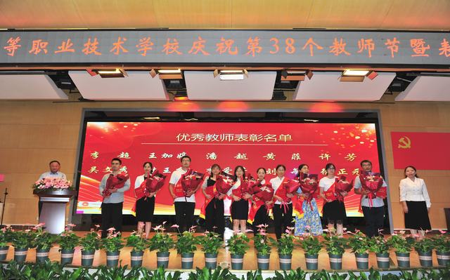 张雪梅代表从教30年教师深情回顾了自己的教学生涯,感慨职业教育的飞速发展和学校日新月异的变化。车怀远代表新入职教师表态,将以青春之力奉献给“三尺讲台”,实现人生价值。大会期间,新教师刘婵娟的独舞《红烛颂》赢得阵阵掌声,学生代表为全校老师献上节日祝福。