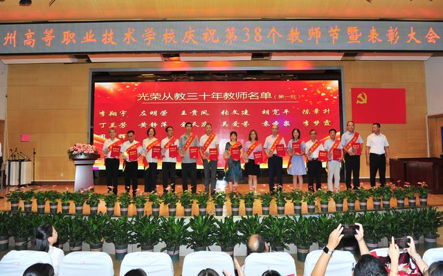 会上,赵杰隆重致辞。他首先代表学校党委、行政向受到表彰的30位同志表示热烈的祝贺,向光荣从教30年的29名老教师表示诚挚的慰问和衷心的感谢。他高度赞扬了全体教职员工用勤劳和智慧为学校高质量发展做出的贡献。他从师资队伍数量和结构取得新变化,高层次人才培养取得新突破,优秀教学团队建设取得新成果等3个方面充分肯定了学校“十四五”以来取得的显著成绩。在充分肯定成绩的同时,他还指出存在的不足。赵杰指出,下一阶段学校将结合 “省职业教育领航学校”建设、“省五年制高职标杆学校”建设和“五年制高职独立设置高职院”建设,在师资队伍建设方面重点做好以下几个工作:一是深入推进师德师风建设工程;二是持续深化双师素质提升工程;三是贯彻落实高层次人才培养工程;四是不断完善教师成长激励工程。他希望全体老师充分发挥自己的聪明才智,将自己的个人发展愿望与学校的发展愿景同频共振、同向发力,成人达己,真正将学校“成长学生、成就教师、成功学校”办学理念落到实处。