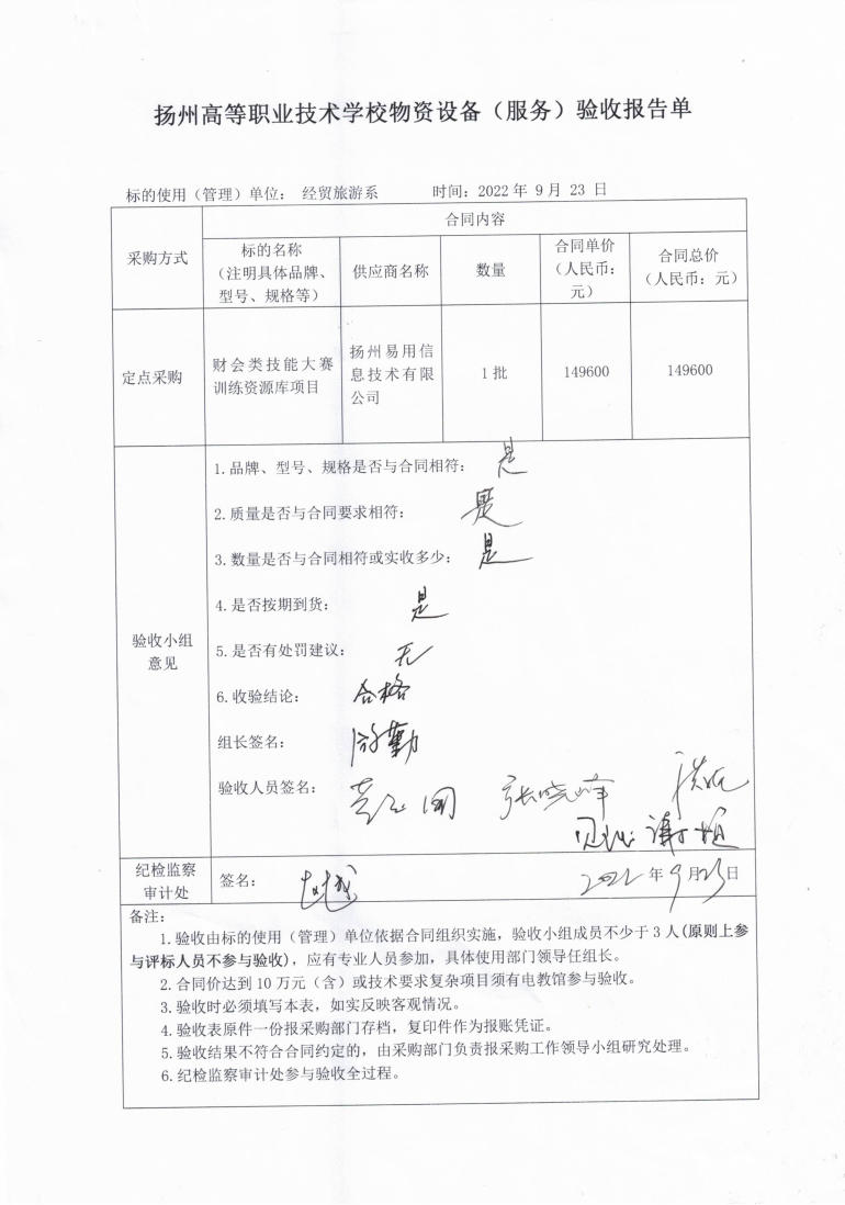 经贸旅游系财会类技能大赛训练资源库项目验收报告单