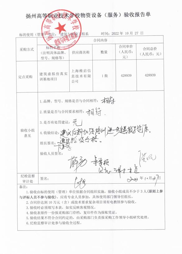 建筑与环境工程系建筑虚拟仿真实训基地项目验收报告单