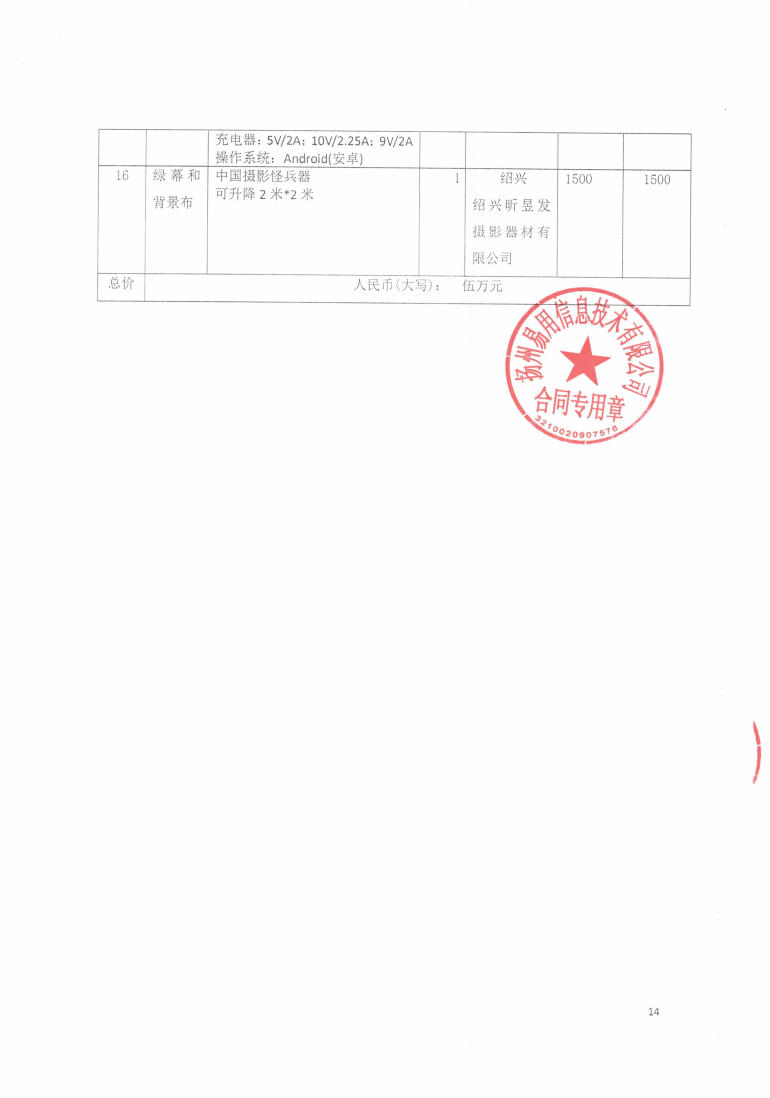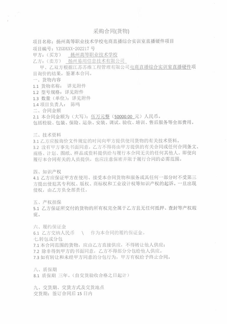 扬州高等职业技术学校电商直播综合实训室直播硬件项目采购合同(货物)