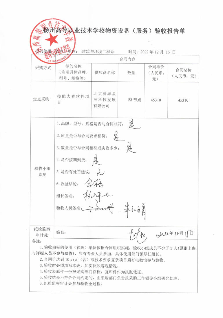 扬州高等职业技术学校建筑与环境工程系技能大赛软件项目验收报告单
