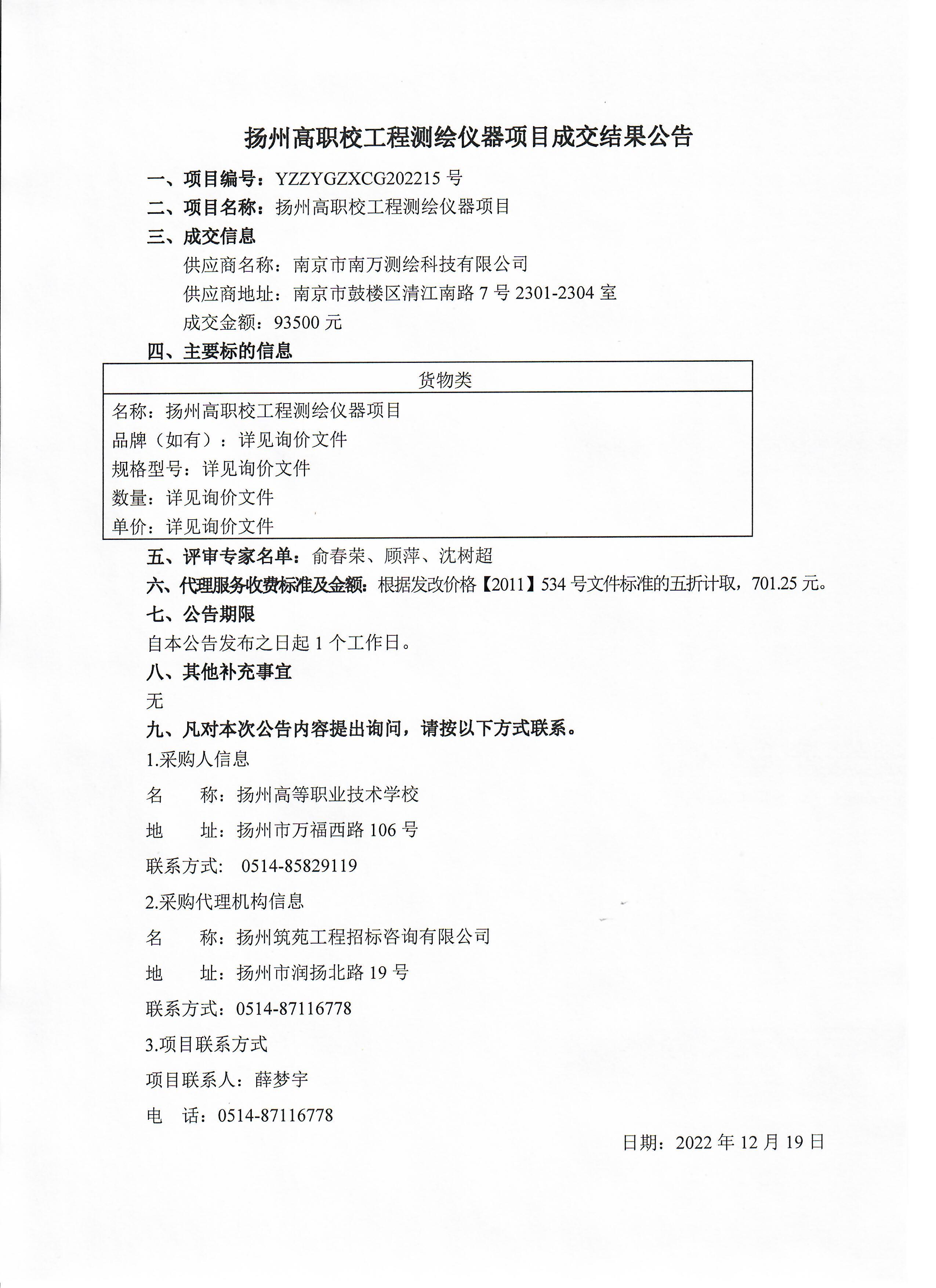 扬州高等职业技术学校工程测绘仪器项目成交结果公告