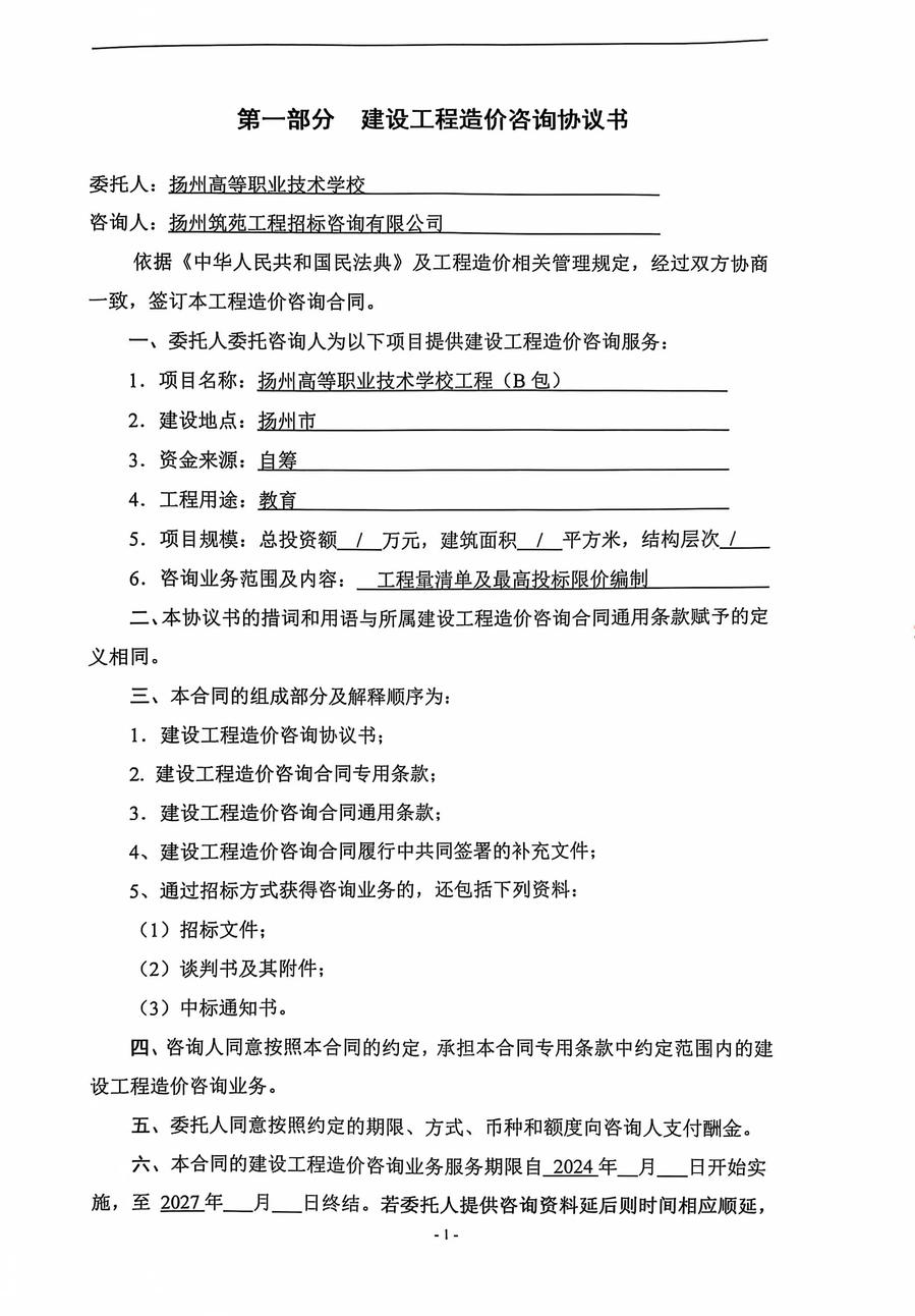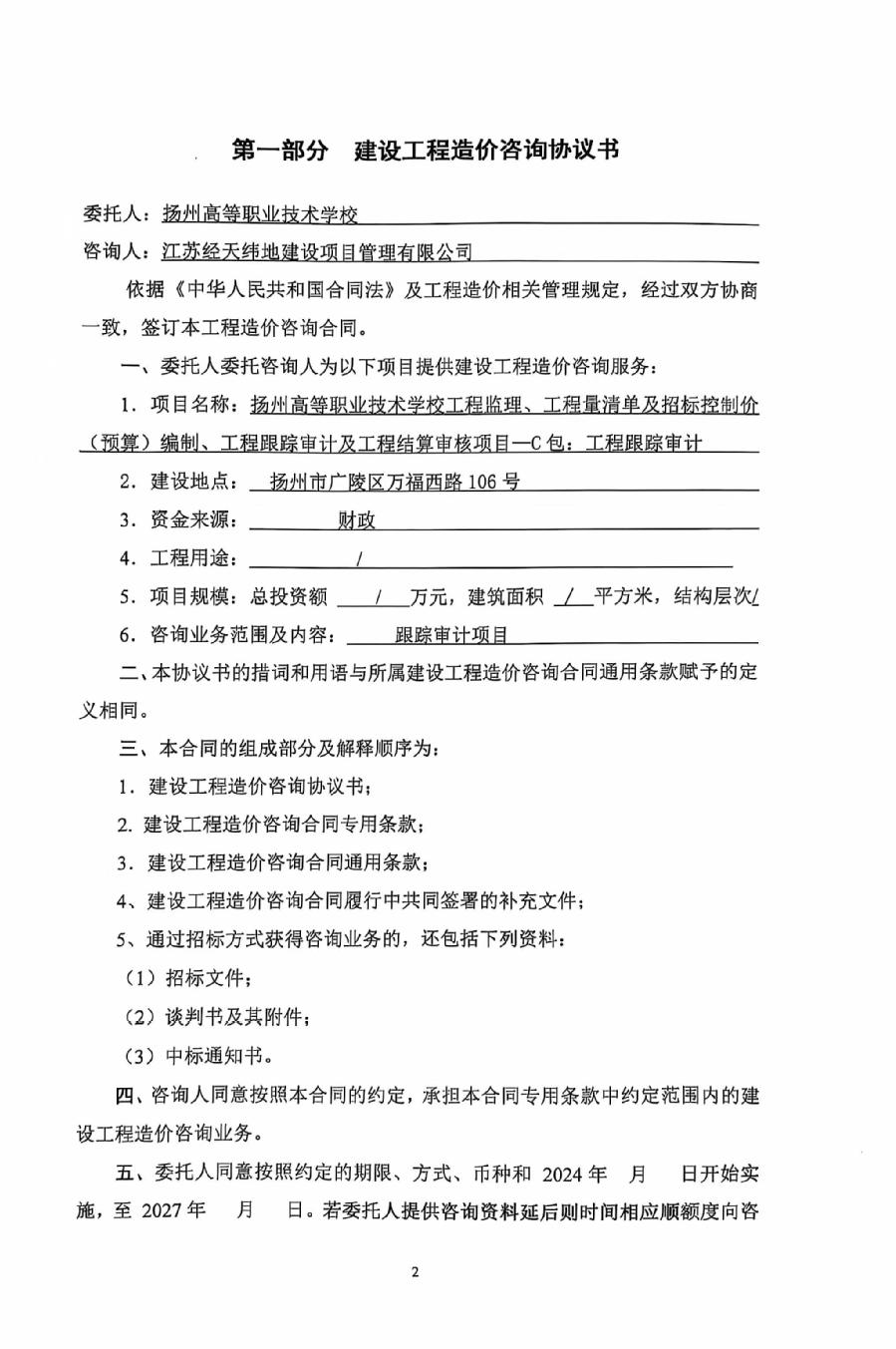 学校工程监理、工程量清单及招标控制价(预算)编制、工程跟踪审计及工程结算审核项目合同公示