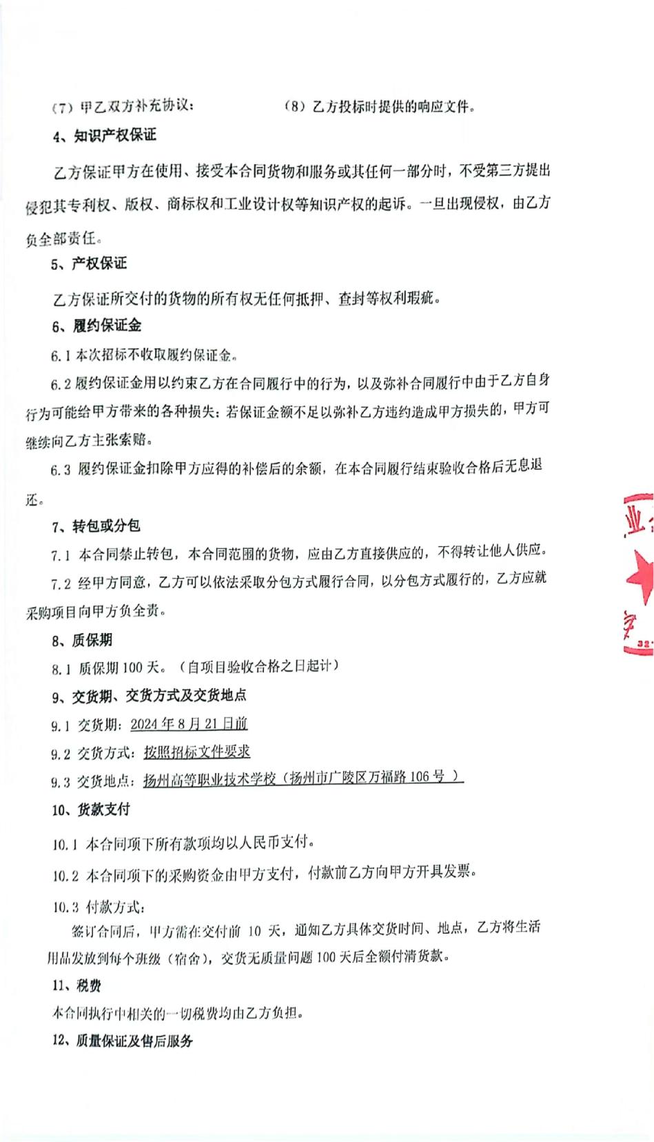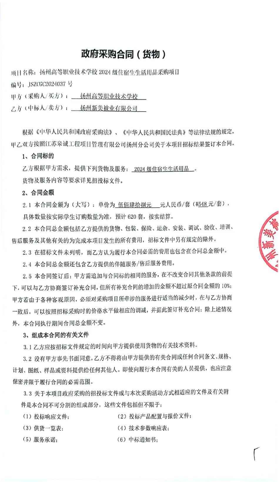 2024级住宿生生活用品采购项目合同