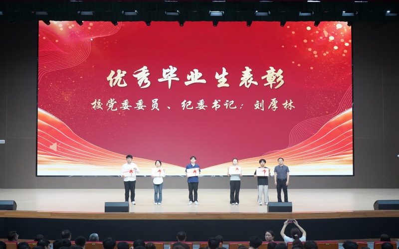 典礼上,徐艳宣读了《关于表彰2025 届优秀毕业生的决定》,刘厚林为优秀毕业生代表颁发证书。