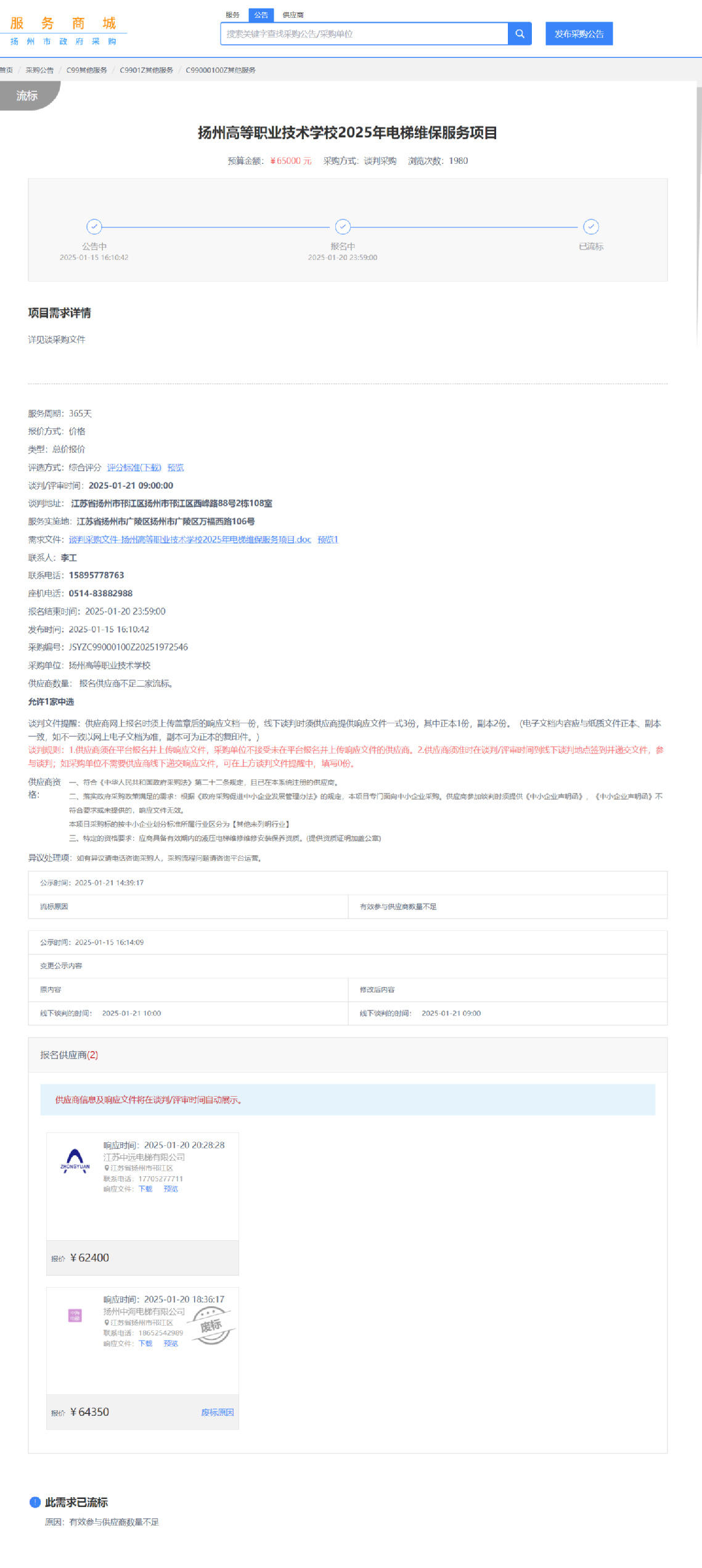 2025年电梯维保服务项目流标公告