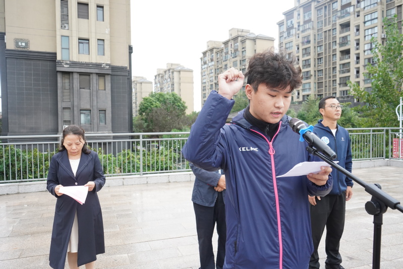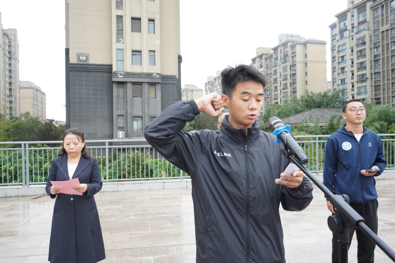 我校G21503班李浩同学作为运动员代表宣誓:将以积极、饱满、热情的态度参加运动会,弘扬更快、更高、更强的体育精神,团结协作、勇于拼搏,赛出良好体育道德风尚。裁判员代表孟紫潭宣誓:将严格遵守比赛规则和裁判员纪律,履职尽责,公正裁判,为参赛队员提供良好的竞技氛围和高效优质的服务。