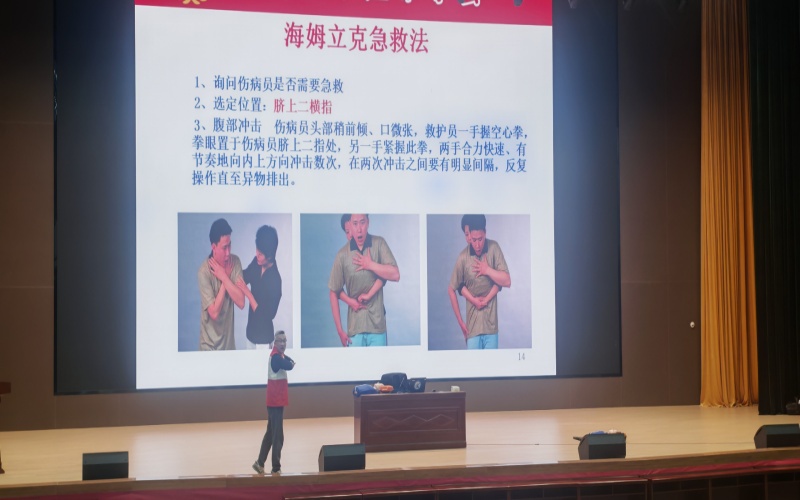乙贝老师以“校园及生活中高频突发的应急场景”为切入点,通过多起真实救援案例的生动分享,让在场师生深刻意识到应急救护知识“早掌握、早受益”的重要性。“在校园里,同学运动时不慎擦伤、扭伤;在生活中,家人进食时突发异物卡喉,这些看似常见的意外,若处置不当,都可能引发更严重后果。”乙贝老师的讲解贴合实际,迅速拉近与同学们的距离。