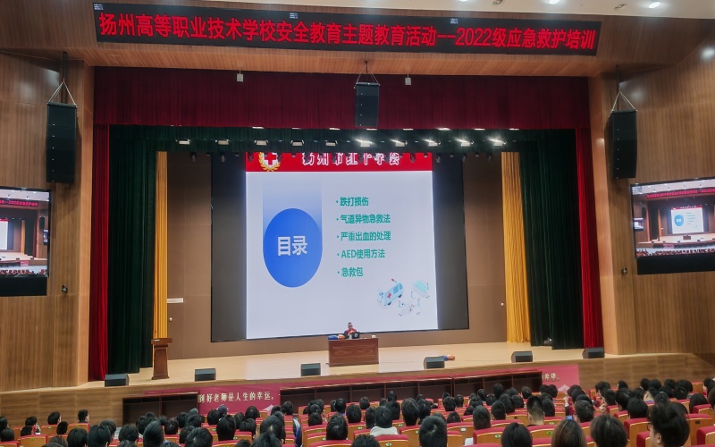 为进一步提升学生应急处置能力,筑牢校园安全防护网,帮助同学们在意外突发时既能科学保护自身安全,又能及时为他人提供专业有效救助,10月21日,我校专为2022级全体学生组织了一场内容实用、形式丰富的应急救护培训。本次培训聚焦“应急救护基本急救知识”与“AED(自动体外除颤仪)使用”两大核心板块,特邀扬州市红十字会应急救护领域资深讲师乙贝老师担任主讲,2022级全体学生及各班班主任参加活动。培训由学生工作处副处长汤恩斌主持。