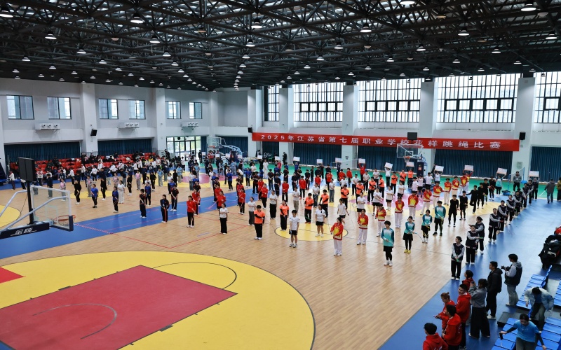 为进一步加强和改进新时代职业学校体育工作,推动校园体育运动广泛深入开展,12月3日—5日,2025 年江苏省第七届职业学校花样跳绳比赛在我校成功举办,吸引了省内 17 支队伍、338 名运动员和教练员齐聚扬州,展开为期三天的激烈角逐。