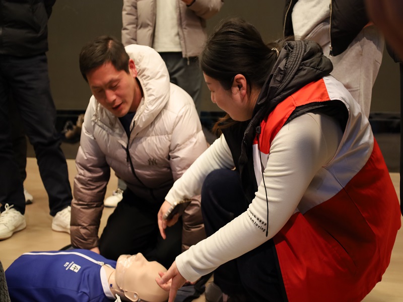 本次培训特邀扬州市红十字会医护急救专家授课,兼具专业性与实用性。培训期间,专家团队围绕心肺复苏(CPR)的核心原理、操作流程以及自动体外除颤器(AED)的使用规范展开系统教学,学员们全程积极参与、主动投入。理论讲解阶段,学员们专注聆听、认真记录,不时针对疑点向专家提问,现场互动氛围浓厚;实操指导环节,学员们严格遵循专家要求,从胸外按压的姿势调整、力度把控,到气道开放的角度、呼吸吹气的节奏,再到AED电极片的精准粘贴、设备启动后的操作衔接,每一个步骤都反复打磨、精益求精。专家们手把手进行指导,对学员的操作细节逐一纠正,确保每位学员都能精准掌握应急救护的关键环节。