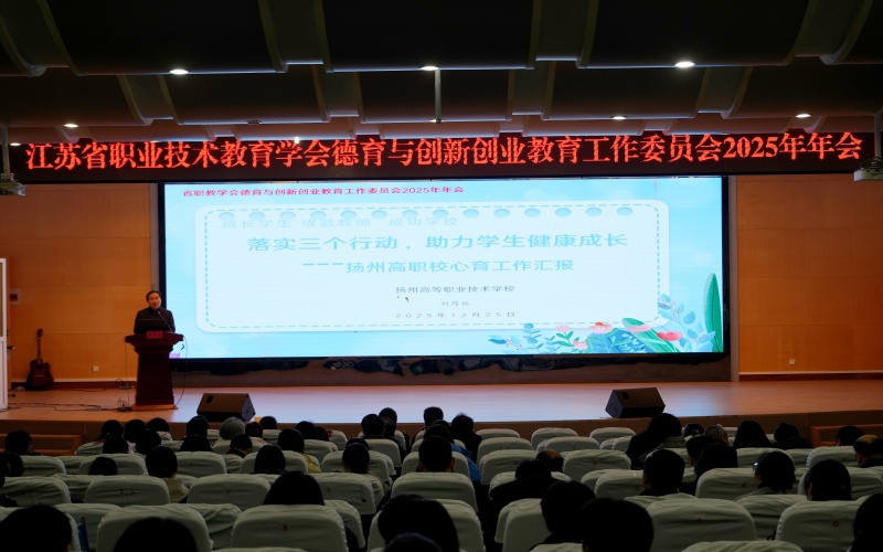 为切实提升职业院校德育与创新创业教育工作水平,12 月 25 日上午,江苏省职业技术教育学会德育与创新创业教育工作委员会 2025 年年会心理健康教育分会在我校毕智楼报告厅顺利召开。来自省内 60 余所高职院、中职校的 70 余名校领导、学工负责人及心理健康教师齐聚一堂,围绕 “心理健康教育” 核心主题,分享实践经验,共探职业院校心育工作新路径,为学生身心健康成长筑牢保障。