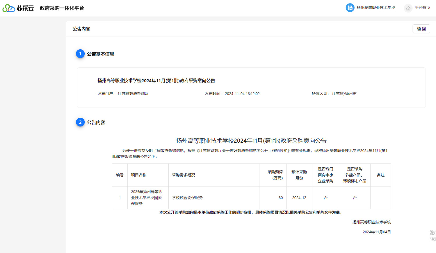 2025年扬州高等职业技术学校校园安保服务政府采购意向公告