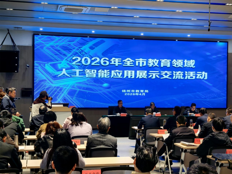 4月21日下午,2026年全市教育领域人工智能应用展示交流活动在扬州市朱自清中学举行。我校作为全市职业教育代表单位,由党委委员、副校长徐艳带队参加,并在大会上作主题分享。