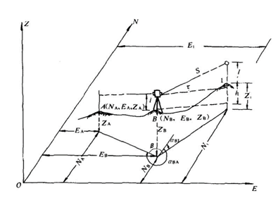 首先,我们来了解一下全站仪坐标测量的基本原理。图中,已知B点坐标和BA边方位角,欲求1点坐标。通过全站仪的测角测距功能可以测出水平角、竖直角和倾斜距离S,则可以按以下步骤计算1点坐标: