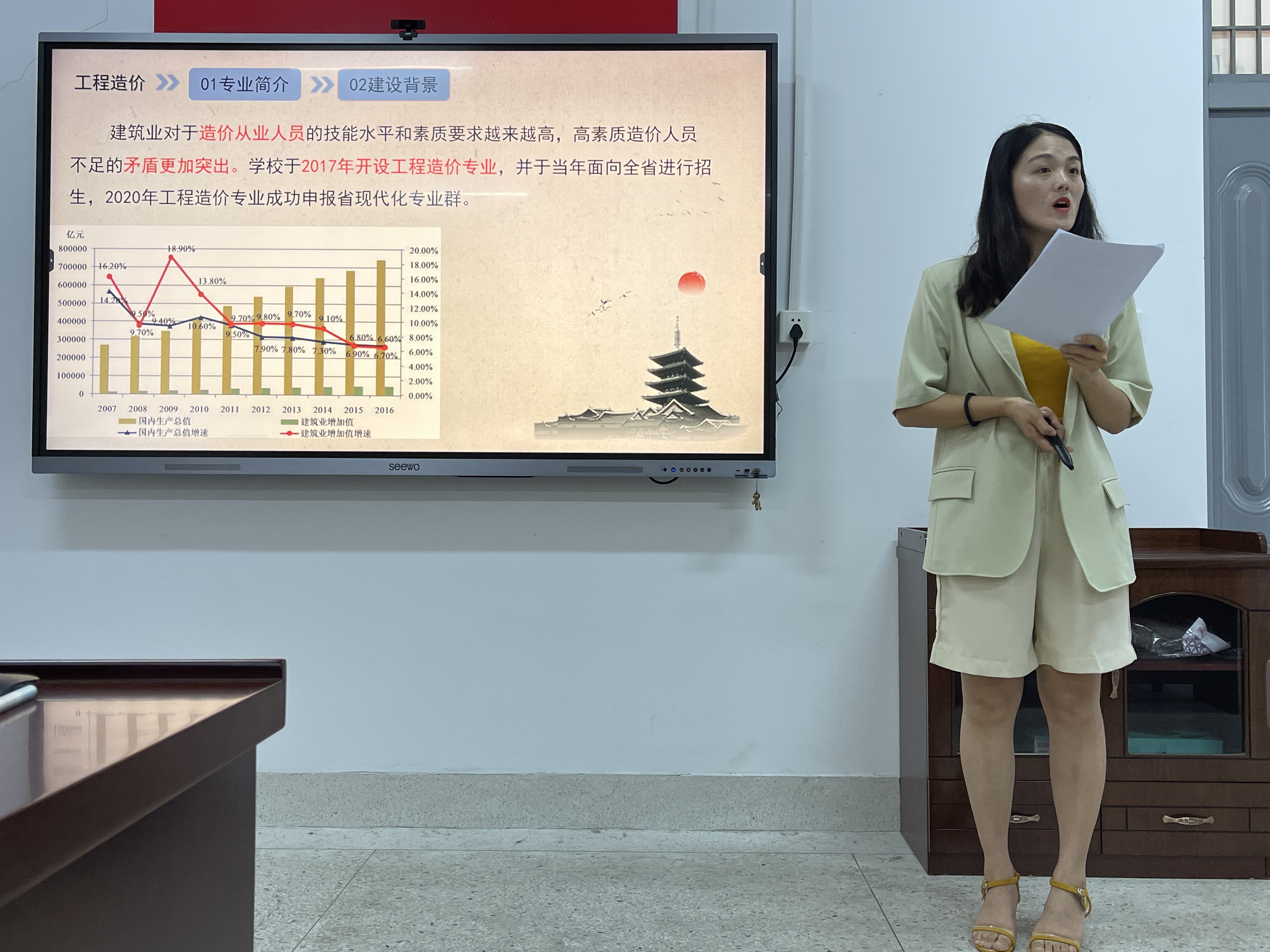 为深入推进专业建设,明确专业发展目标,促进专业负责人专业成长,加快师资队伍融合发展,7月8日上午,建筑与环境工程系在知行楼402会议室举行“专业负责人说专业说专业”选拨赛,工作室全体教师参加。会议特邀学校教务处处长李翔宇、建工系教学主任杨贤梅、资深专业课教师卞素兰担任评委,会议由建筑与环境工程系主任、党支部书记李春主持。