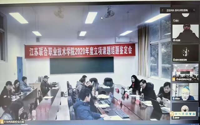 2月11日上午,学校在启慧楼102室召开江苏联合职业技术学院2020年度立项课题结题鉴定会,会议采用线上线下相结合的形式。本次鉴定会专家由扬州市教育科学研究院职教研究室主任陈金国、江苏联合职业技术学院教学研究与质量监督处副处长贲道鹏、扬州市教育科学研究院教科所所长夏心军、江苏联合职业技术学院南通分院副校长吴晓进、学校教师发展中心主任张雪梅组成。会议由学校副校长强玉龙主持,结项鉴定环节由专家组组长陈金国主持。课题组成员、教师发展中心相关人员参加了此次会议。