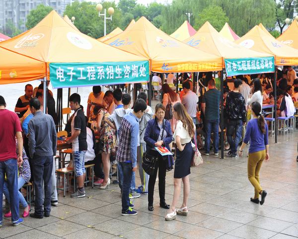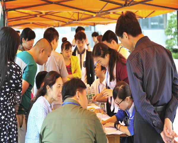 中考成绩在27日晚8点正式发布,当晚,我校招生工作小组的老师们牺牲下班时间,主动守在办公室为打来电话的家长解疑答问,由于咨询人数太多,电话一度占线,以致28日早上七点多就有家长带着考生来我校咨询、报名。上午10点以后,招生报名工作渐入高潮,招生咨询台前人头攒动,摩肩接踵,负责接待的老师们不厌其烦、耐心细致地为考生家长解答各种疑问,努力让家长和考生对我校的专业设置、办学水平、办学优势等方面有全方位的了解。