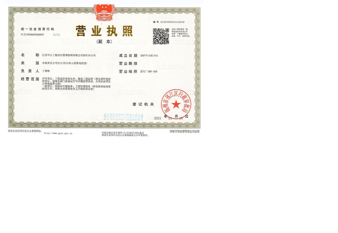 江苏中正工程项目管理咨询有限公司扬州分公司