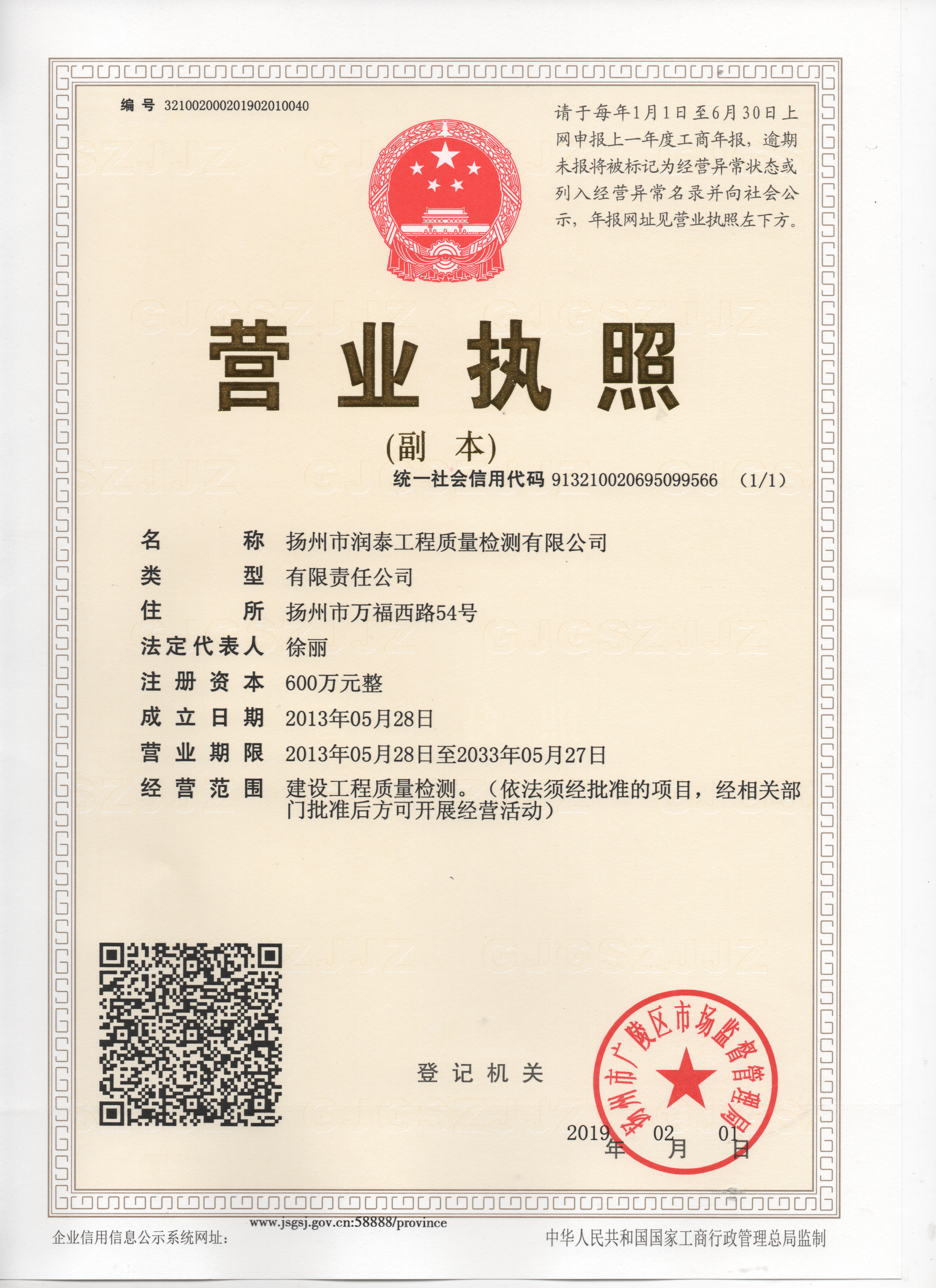 扬州市润泰工程质量检测有限公司成立于2013年5月,是一家专业从事工程质量检测的企业,欢迎有志毕业生加盟,共创美好未来。