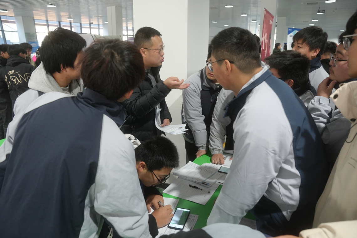 招聘会双选活动现场,人山人海,热闹有序。同学们手持精心准备的简历,积极与招聘单位进行沟通交流。刘厚林等学校领导与用人单位面对面交流,了解近期招聘要求及加工制造业未来几年的人才储备计划,还与参会的毕业生们亲切交谈,了解岗位实习期望,鼓励其树立正确的择业观,做好长远职业规划,引导他们理性看待就业形势,把握政策导向,转变就业观念。参会单位进行现场面试,当场进行选拔,学校、实习单位、学生三方签署岗位实习协议。