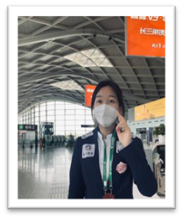 2022年1月,她来到扬州泰州国际机场,迈出了实习的第一步。也是她人生中第一次重大的挑战。岗位工作为综合服务柜台及广播室,包括内容有投诉受理、普通问询、特旅服务、逾重行李收费、失物招领。一天工作基本是围绕着这些事情来开展。在问询柜台上,工作相对来说需要较大的耐心,因为要回答各色各样的旅客有关机场与他们所不能理解的事情,无论是处理现场还是旅客电话接听的问题都是需要有较强的心理素质。但她始终带着责任心、爱心、包容性、耐心去帮助所有旅客拥有最美旅途。
