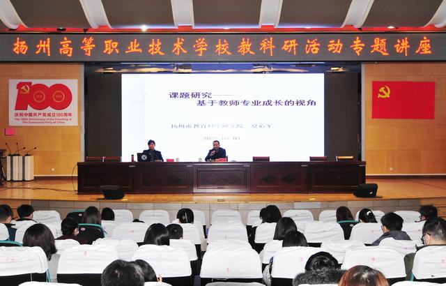 为鼓励教师转变教科研意识,提升课题研究能力,提高课题研究实效,从实际需求为教师们提供帮助,解决教师课题研究的困惑,3月3日下午,学校邀请扬州市教育科学院教科所所长夏心军在报告厅作《课题研究——基于教师专业成长的视角》专题讲座,学校一百七十余名教师参加讲座。